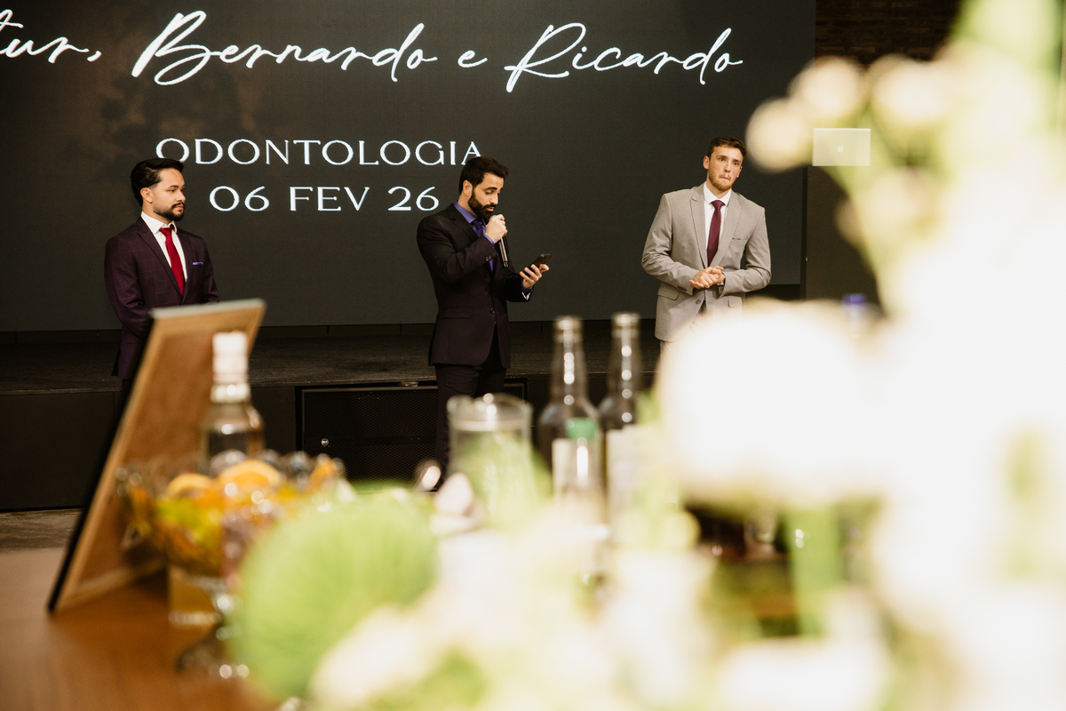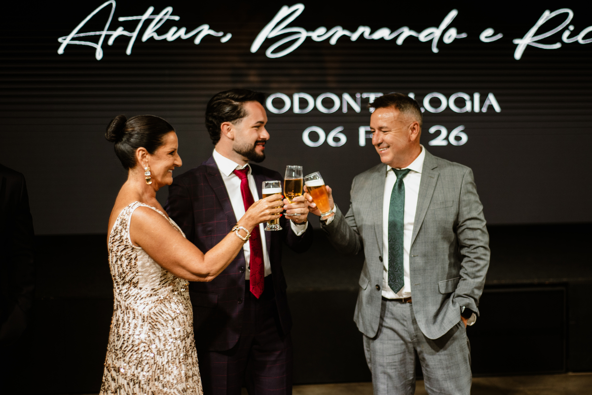 o espaço Celebrar recebeu uma noite especial, marcada por emoção e orgulho: a formatura em Odontologia de Arthur, Bernardo e Ricardo.